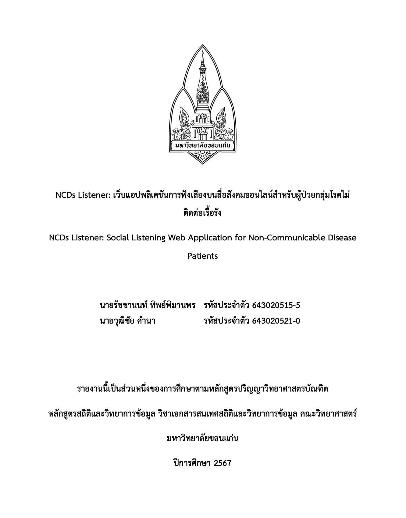 เว็บแอปพลิเคชันการฟังเสียงบนสื่อสังคมออนไลน์สําหรับผู้ป่วยกลุ่มโรคไม่ติดต่อเรื้อรัง